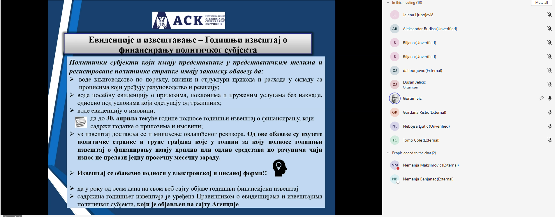 Обука у онлајн формату на тему „Примена Закона о финансирању политичких активности“ одржана је 6. новембра 2025. године.