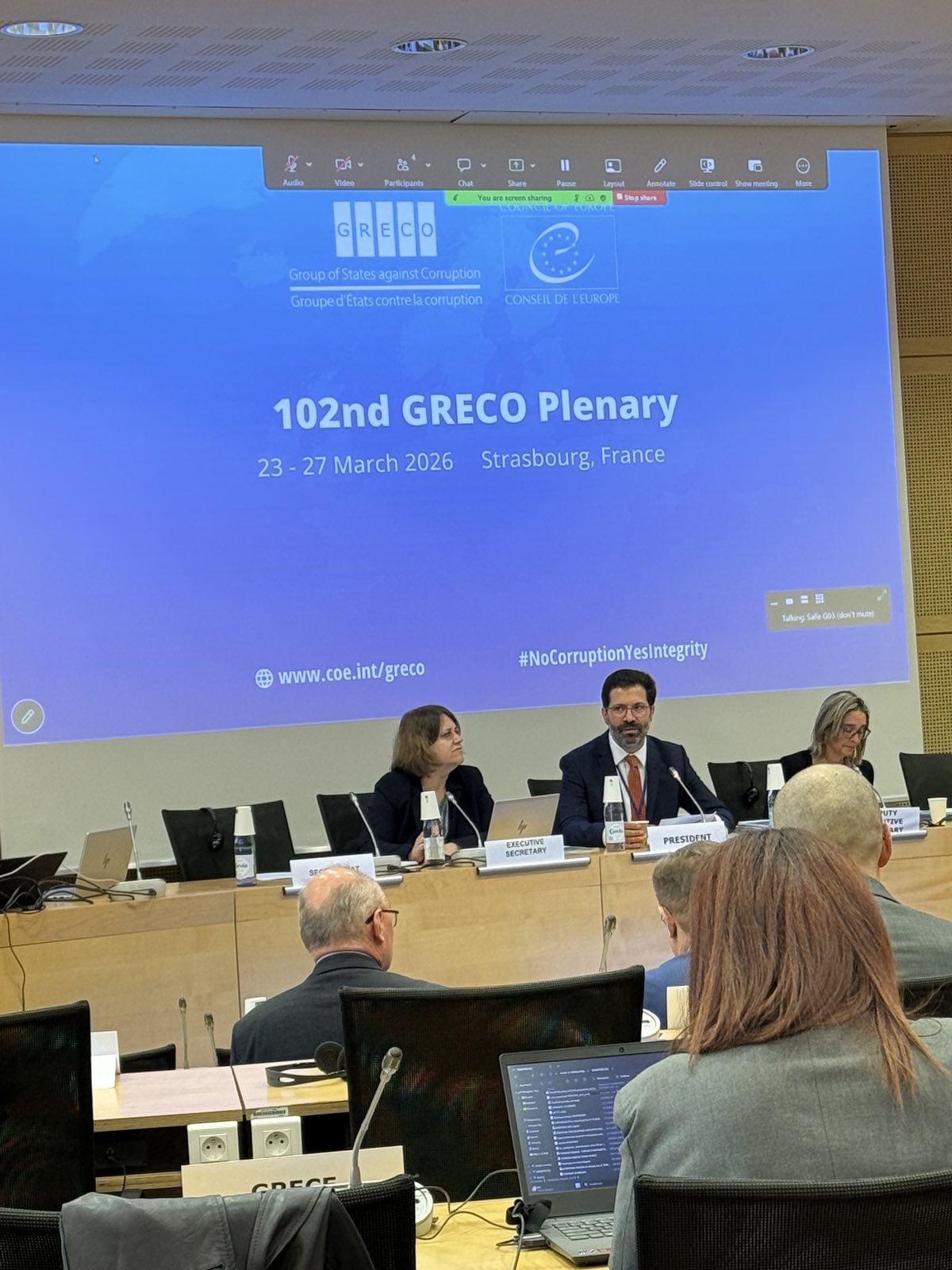Директор Aгенције Дејан Дамњановић, који је и шеф Делегације Републике Србије и Бојана Смартек, в.д. помоћника директора у Сектору за интегритет и антикорупциону едукацију учествовали су на 102. пленарном заседању Групе држава против корупције Савета Европе (GRECO), које је одржано у Стразбуру од 23. до 27. марта 2026. године.