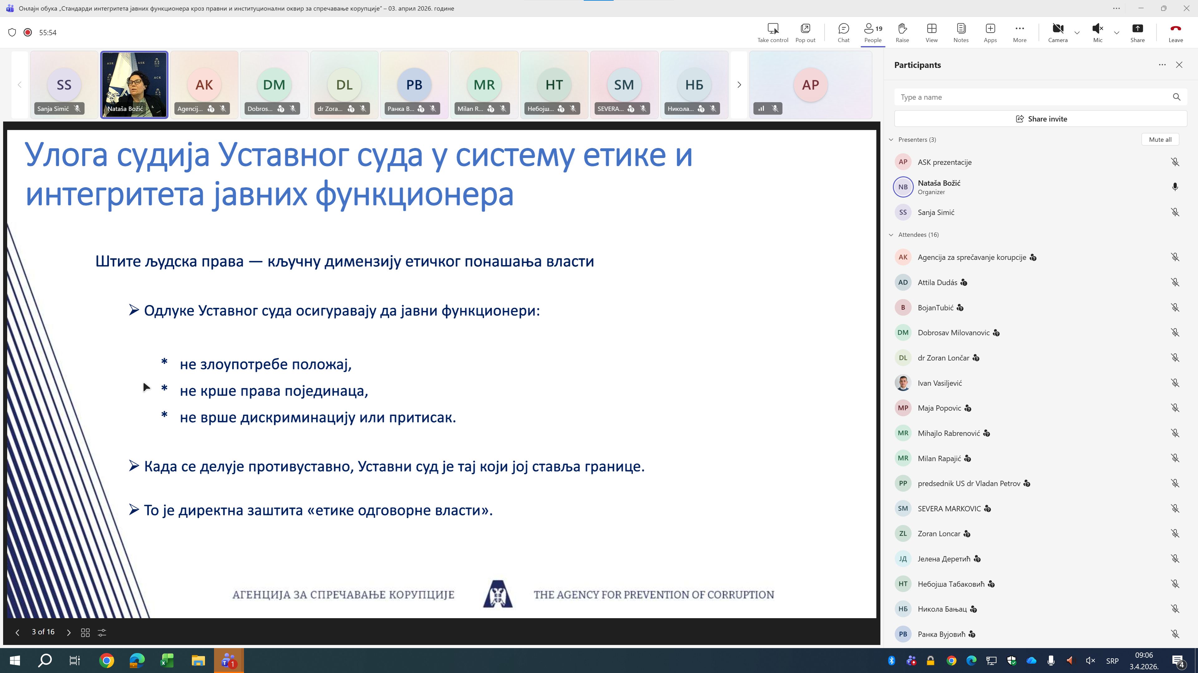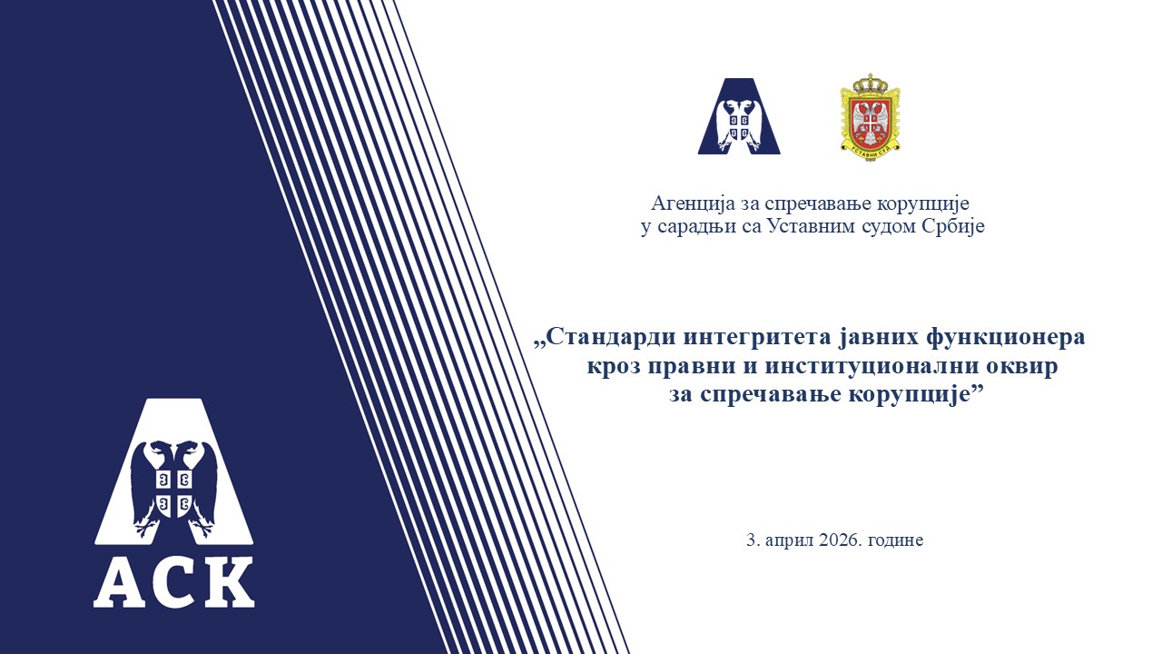 Aгенција је, у сарадњи са Уставним судом Србије, реализовала онлајн обуку „Стандарди интегритета јавних функционера кроз правни и институционални оквир за спречавање корупције“, намењену судијама Уставног суда који обављају највише јавне функције.